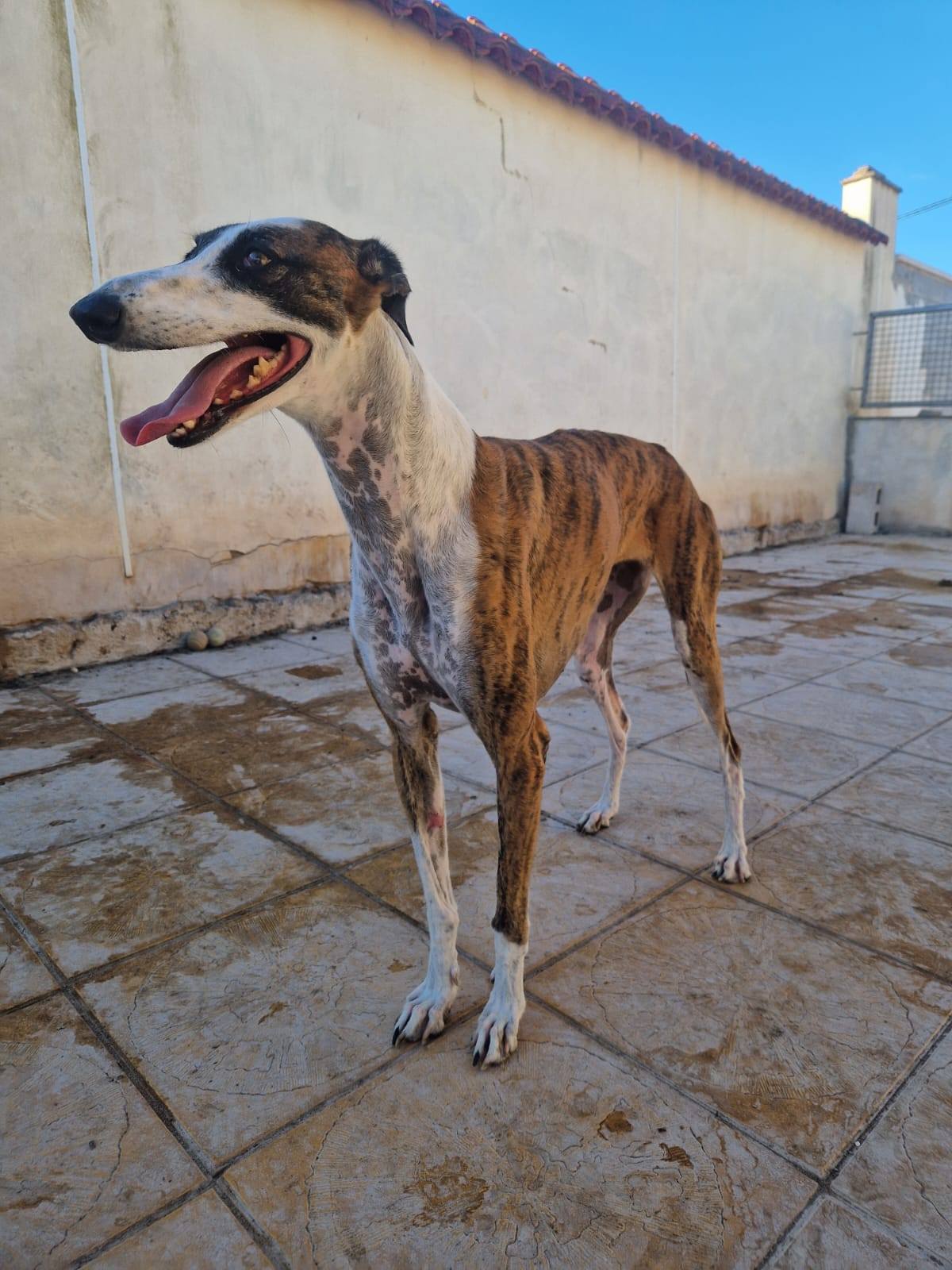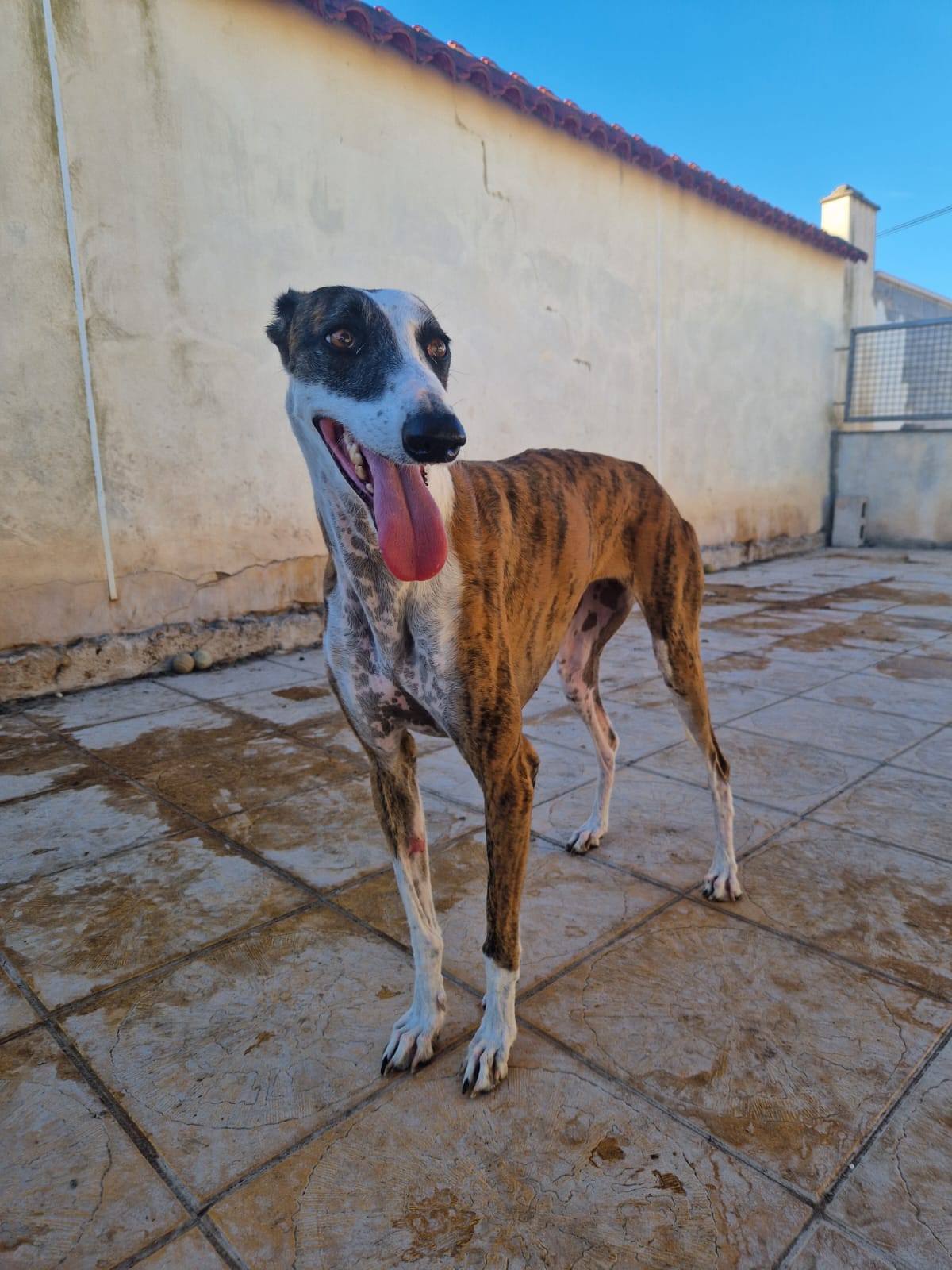 Luhen would thrive in a calm, stable home where she can settle into a routine and slowly build trust. She’ll need someone patient—ideally with some experience—who can show her that she’s finally safe. While she’s a little selective with other dogs, she has shared kennels successfully, including with her current Galgo companion, with whom she plays and relaxes in the sunshine. However, she’s not a fan of water buckets being used as toys—she made that very clear!