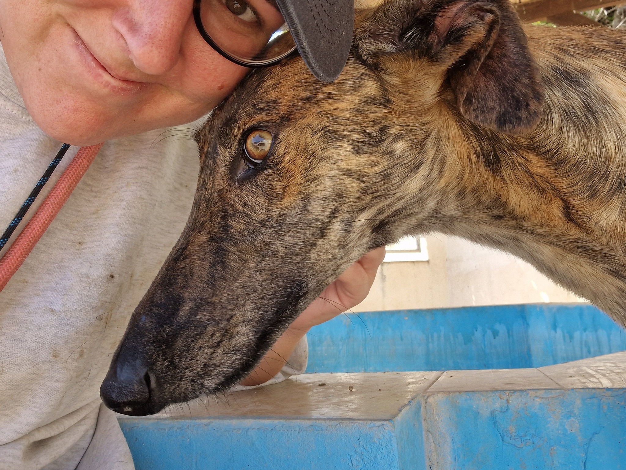He’s a big, soft-hearted Galgo—around 4 to 5 years old—who carries himself with a quiet elegance. Friendly, affectionate, and gentle, he’s got all the makings of a perfect companion. Fiyero walks beautifully on the lead, gets along well with other dogs, and is currently sharing a kennel with three others—getting on with everyone like a true gentleman.